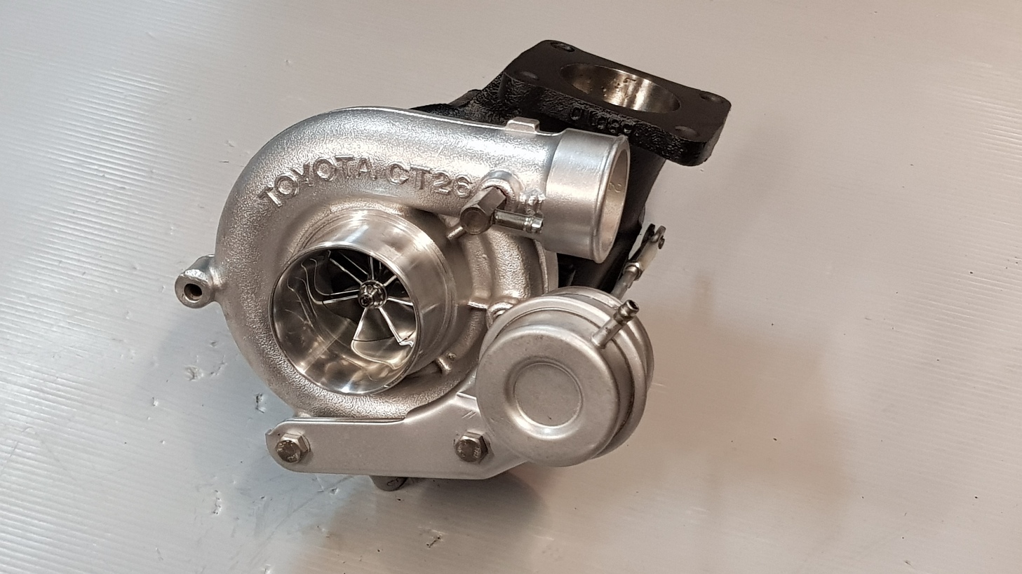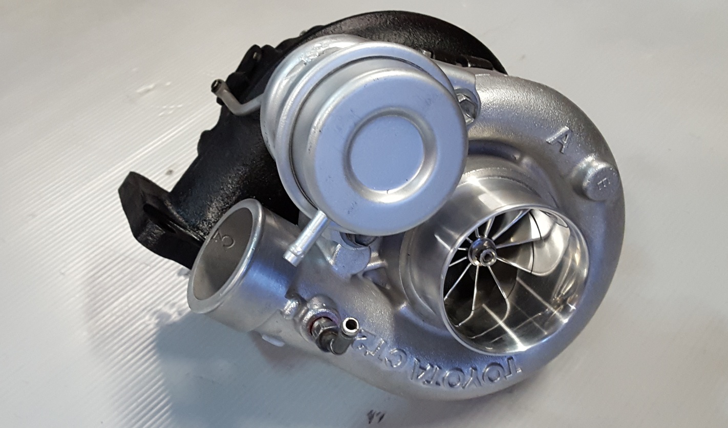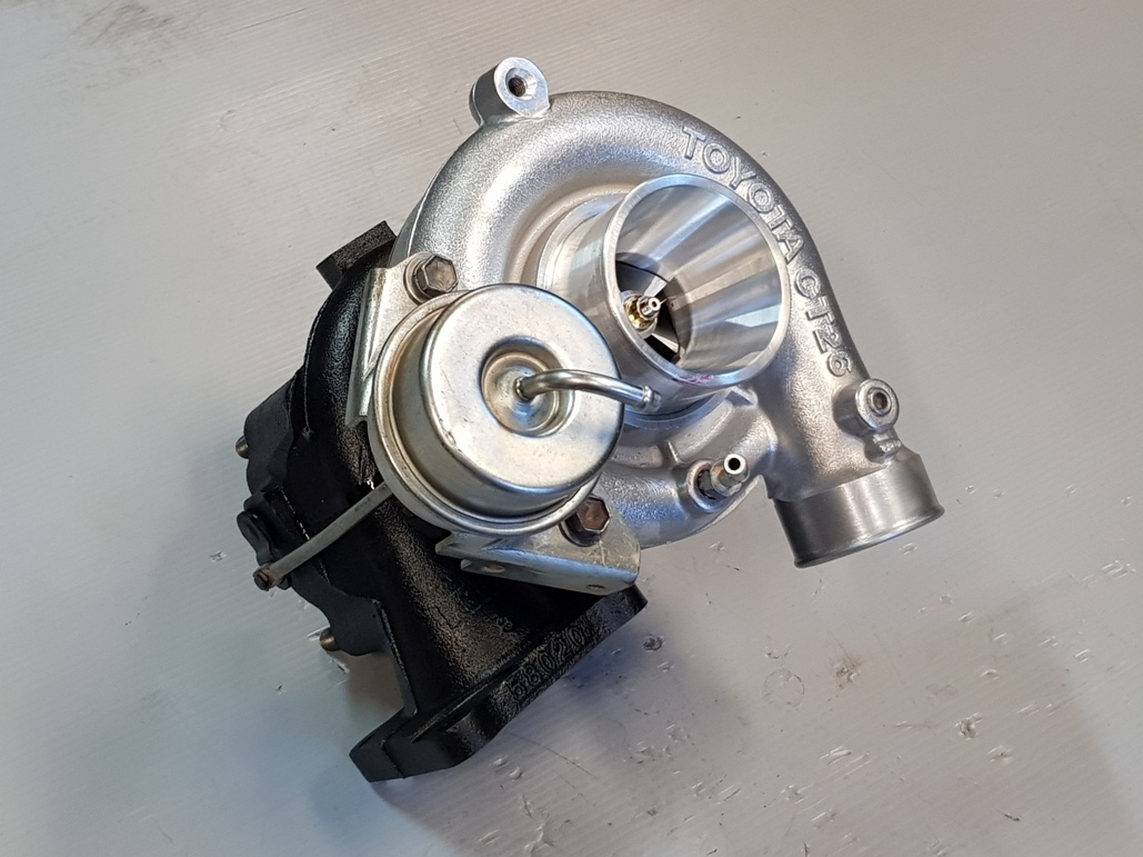 This option eliminates that with fitting a special heavy duty CT26A chra and also using a special in house designed and Selected Billet Compressor wheel and larger high flow turbine wheel to suit the customers application, that allows for huge boost loads up to 28psi and 280hp)