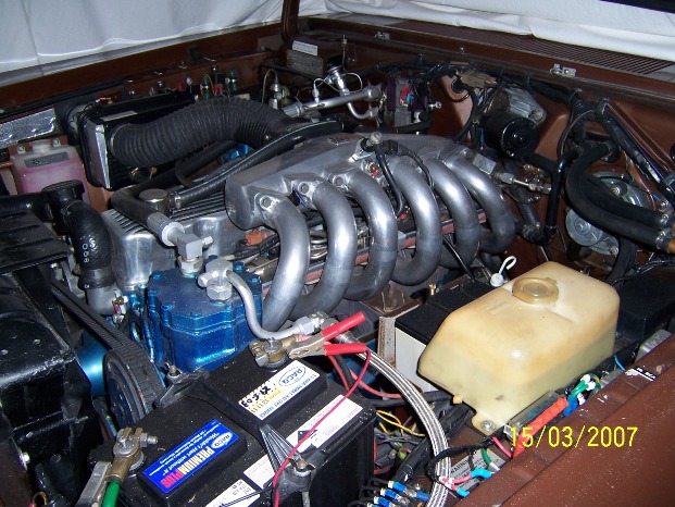 At 95,000 miles ,The cylinder head (130 psi) was replace by a (145 psi) cylinder head ; which was overhauled, with new inlet valves, valve guides with ports ,inlet & exhaust ,smoothed and polished.The single exhaust manifold was replaced by a twin exhaust manifold ,where the 3 wire Oxy ,O2 sensor is mounted down just passed the exhaust junction ,this can give continuous 02 indication as required…The opportunity was taken to go thru the brakes…rebuild the Mastercylinder, Rebuild the rear wheel cylinders; Front calliper cylinders dismantled and cleaned; Vacuum brake actuater had new seals fitted. The brake linings were found to be in very good condition.