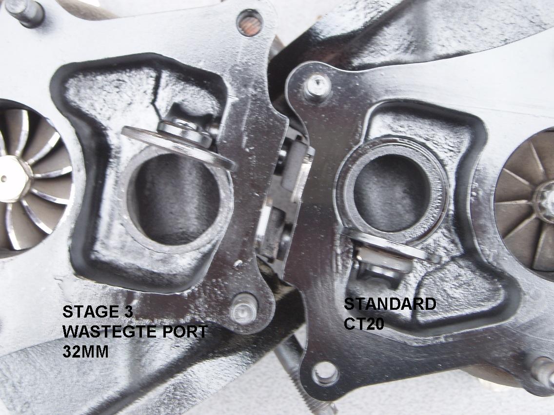 Unshrouded area of walls around wastegate disc because a larger valve is blocked by the side walls makeing a bigger wasegate pointless.